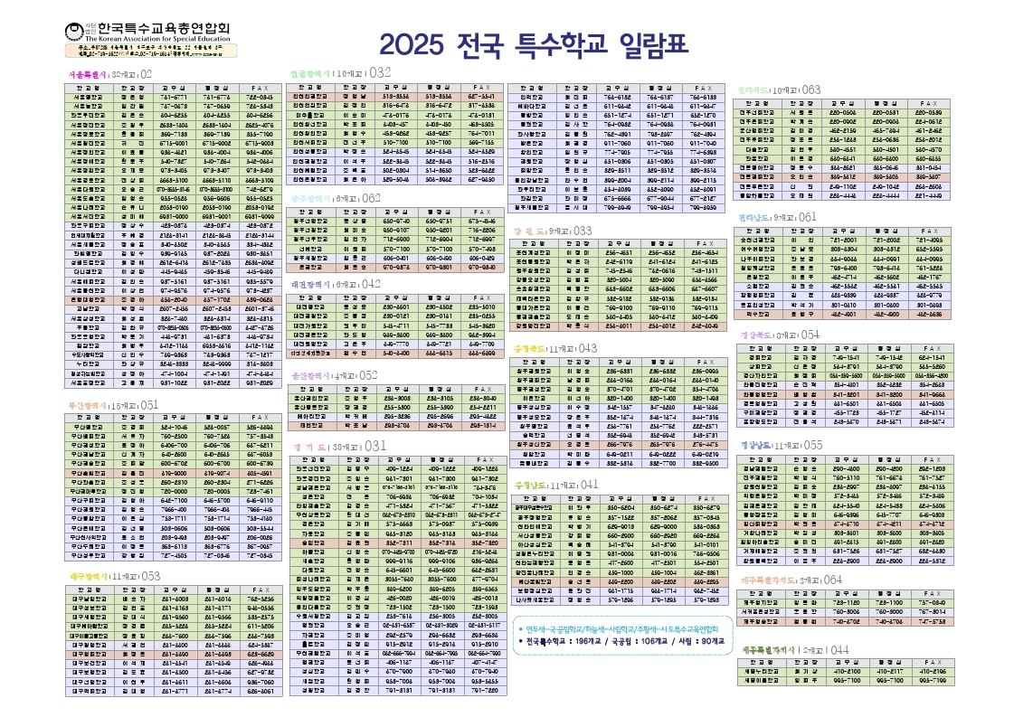 『 2025 전국 특수학교 일람표 』글의 상세내용을 확인하는 표로 제목, 부서명, 등록일, 조회, 첨부, 내용으로 나뉘어 설명합니다.