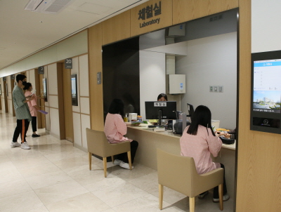 혈액검사를 위해 채혈을 하고 있는 건양대 신입생들.JPG