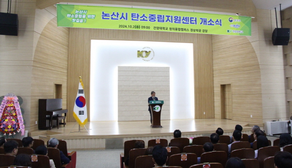 이날 개소식에는 김용하 총장과 백성현 논산시장을 비롯해 대학 및 시 관계자, 논산시 비영리단체, 충청남도 내 탄소중립지원센터, 논산시민 등 100여명이 참석했다.