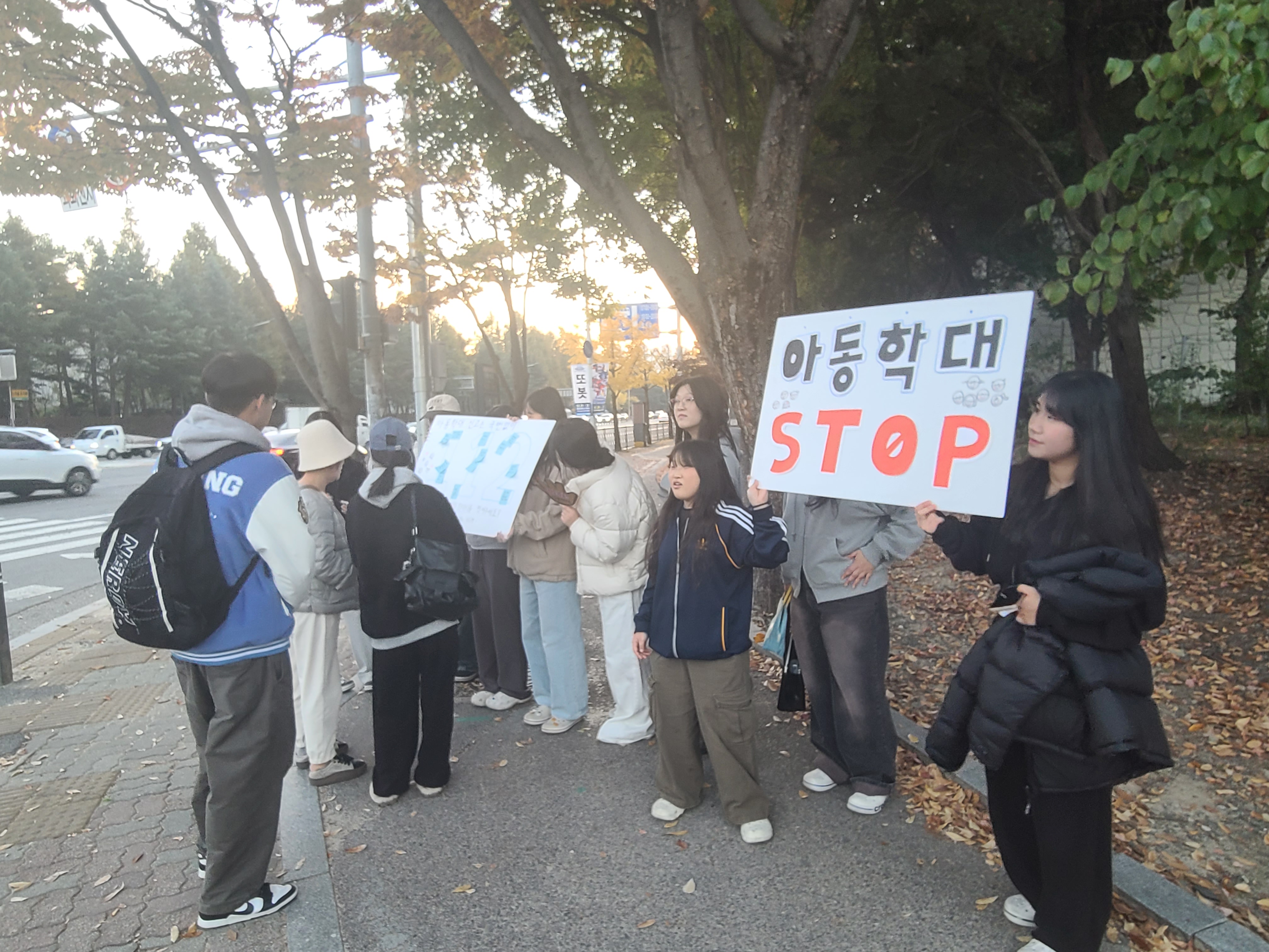 건양대 간호대학, ‘아동학대예방의 날’ 캠페인 건양대학교(총장 김용하) 간호대학(학장 임효남) 학술동아리 아동간호 연구회(지도교수 오재우) 및 아이조아(지도교수 허보윤) 학생들이 오는 11월 19일 세계 아동학대예방의 날을 맞아 7일 오후 대전 관저동 건양대학교병원 앞 사거리에서 아동학대예방캠페인 활동을 진행했다. 건강하게 성장하고 보호받아야 할 아이들이지만 아동학대 관련 이슈는 끊임없이 일어나고 있어 사회적 관심이 더욱 필요하다는 인식을 심어주고자 계획된 이날 캠페인은 아동학대를 멈추고 아동학대가 의심될 경우 신고방법을 알리는 피켓 홍보를 중심으로 이뤄졌다. 또한 시민들을 대상으로 아동학대예방을 다짐하는 메시지를 작성해 붙이는 활동을 통해 많은 지역 시민들이 ‘아동학대 멈춰’, ‘아동학대 예방 사랑한다 아들 딸’ 등의 메시지를 남기기도 했다. 건양대 간호대학 오재우, 허보윤 교수는 “간호사는 아동학대신고의무자에 포함되며 이번 캠페인 활동을 통해 학생들이 사회문제에 더욱 관심을 가지고 민감하게 반응할 수 있는 예비 신고의무자로서의 성장의 기회가 되었다”고 밝혔다. 아동복지법 제23조에 따라 아동학대예방의 날인 11월 19일부터 1주간 아동학대예방 주간이 진행된다.