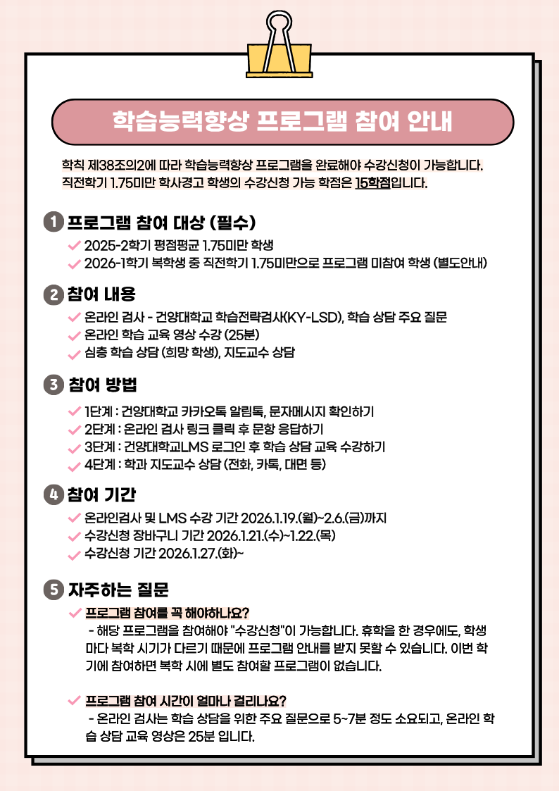 | 제목 | 2025-2학기 학사경고 학습능력향상 프로그램 안내 | ||||