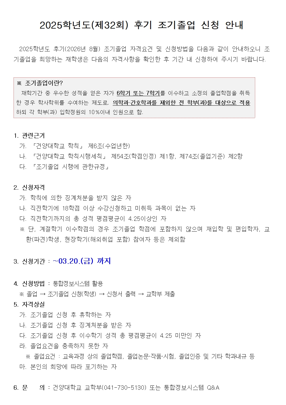 | 제목 | 2025학년도(제32회) 후기 조기졸업 신청 안내 | ||||