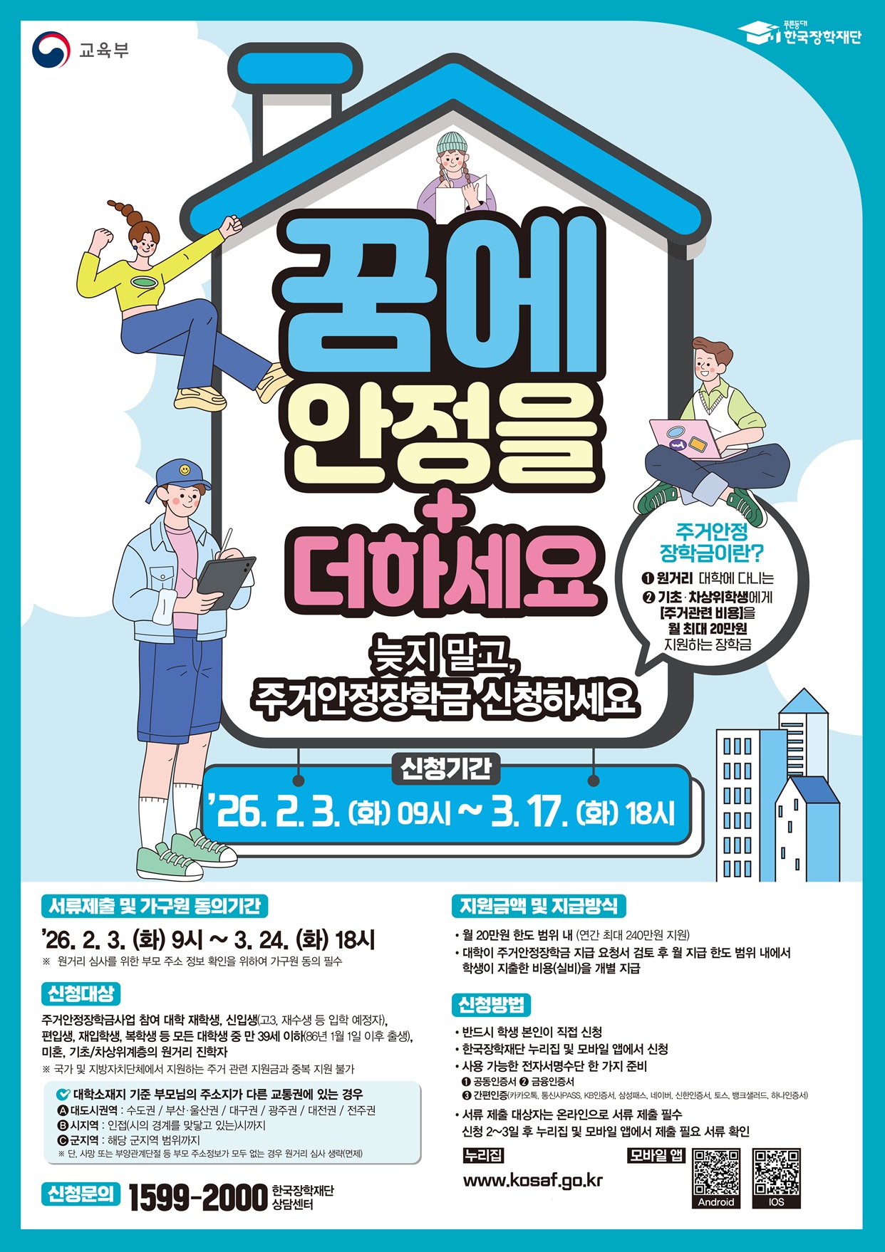 | 제목 | 2026년도 1학기 주거안정장학금 2차 신청기간 안내 | ||||