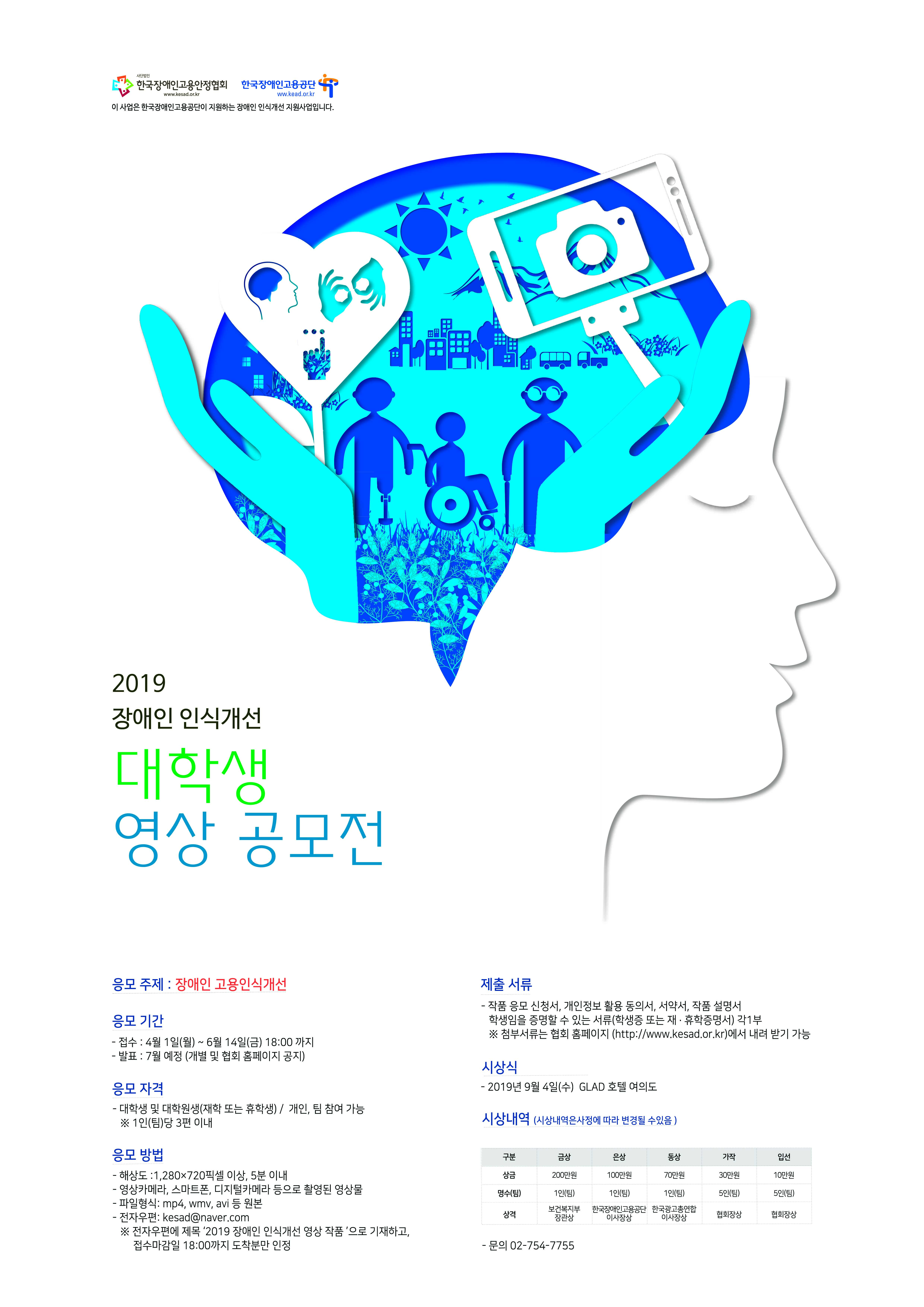 | 제목 | 2019 장애인 인식개선을 위한 대학생 영상 공모전 안내 | ||||