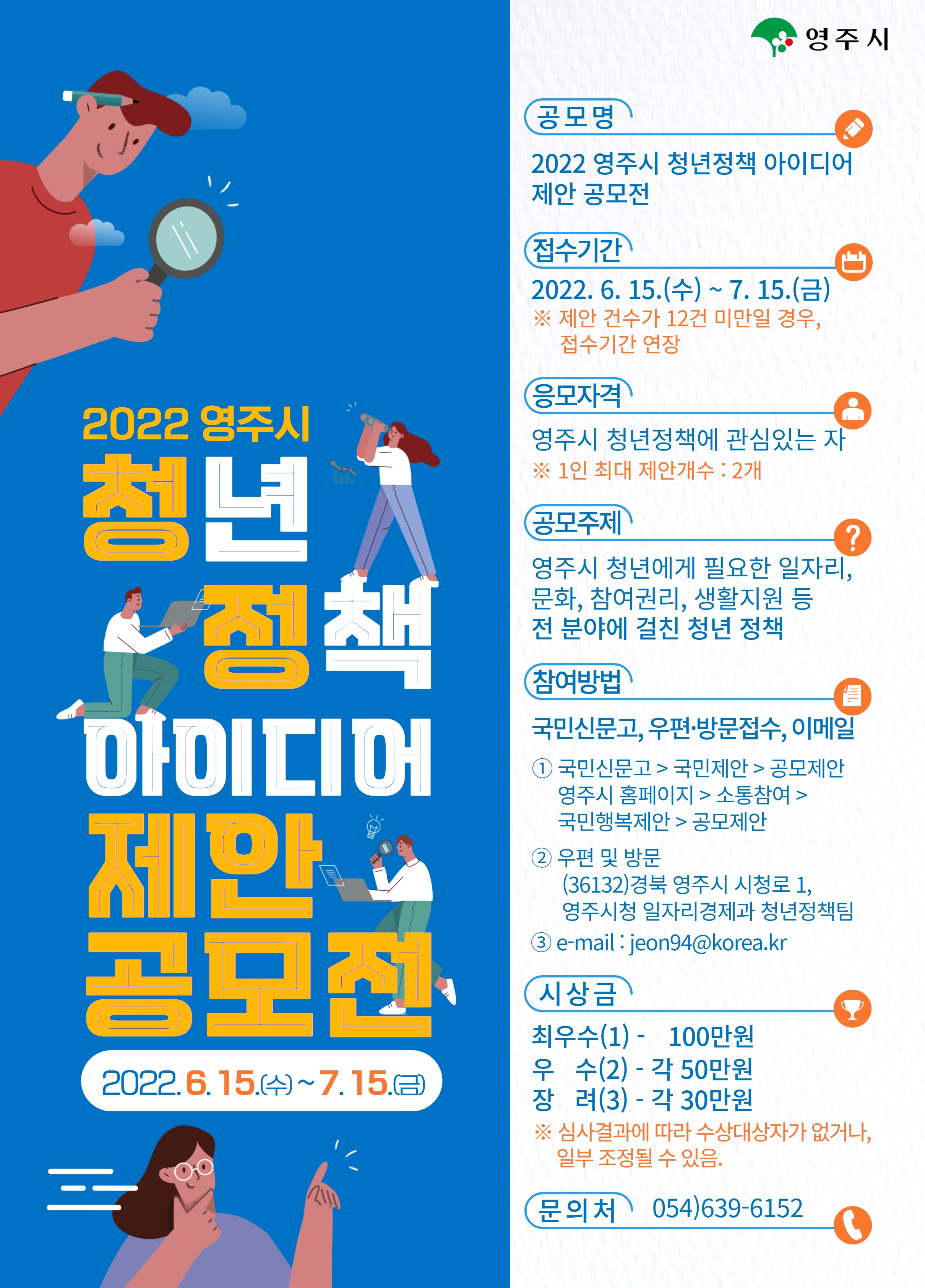 | 제목 | 2022 영주시 청년정책 아이디어 제안 공모전 안내 | ||||