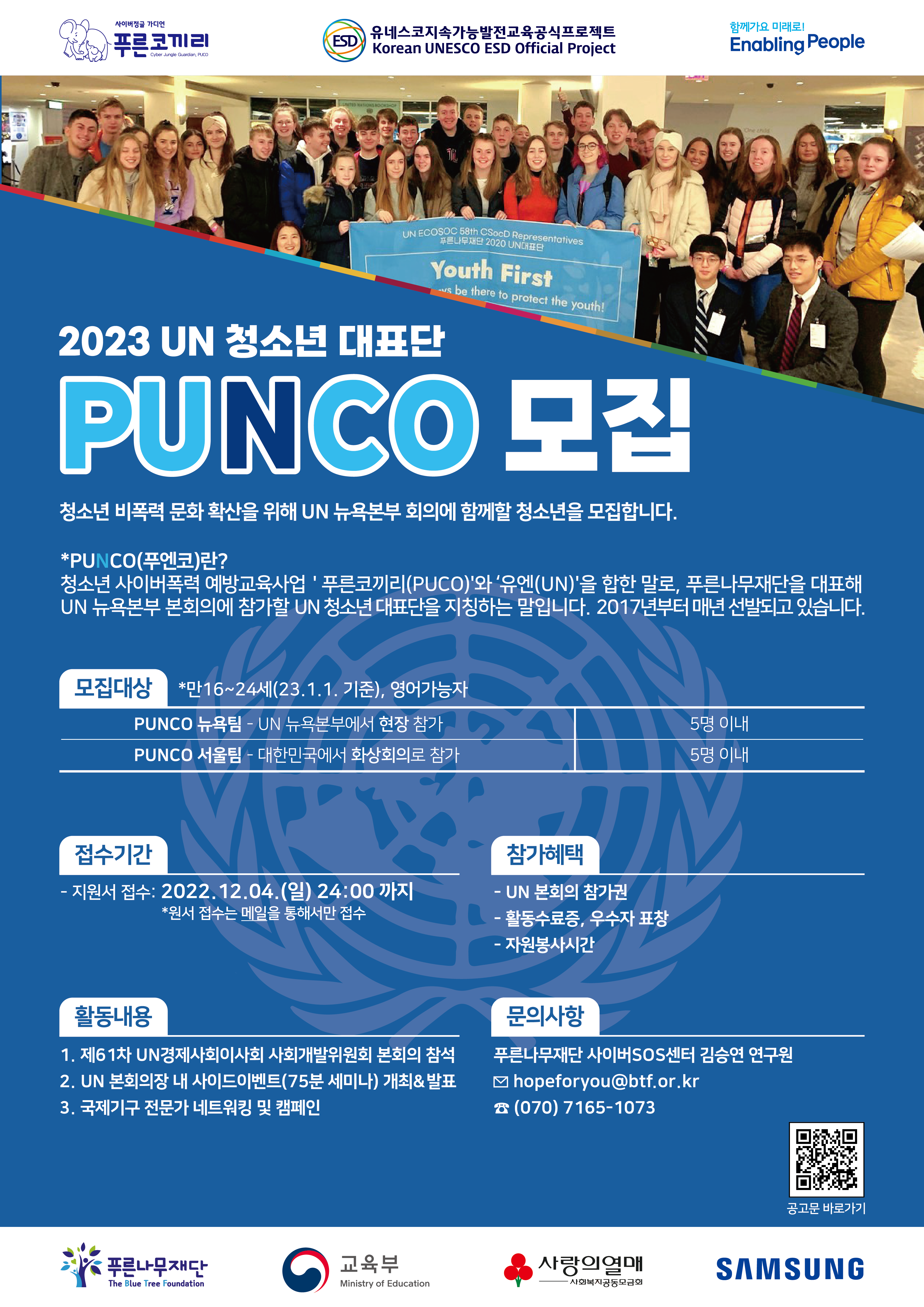 | 제목 | 푸른나무재단 2023 UN 본회의 참가 청소년 대표단 모집 안내 | ||||
