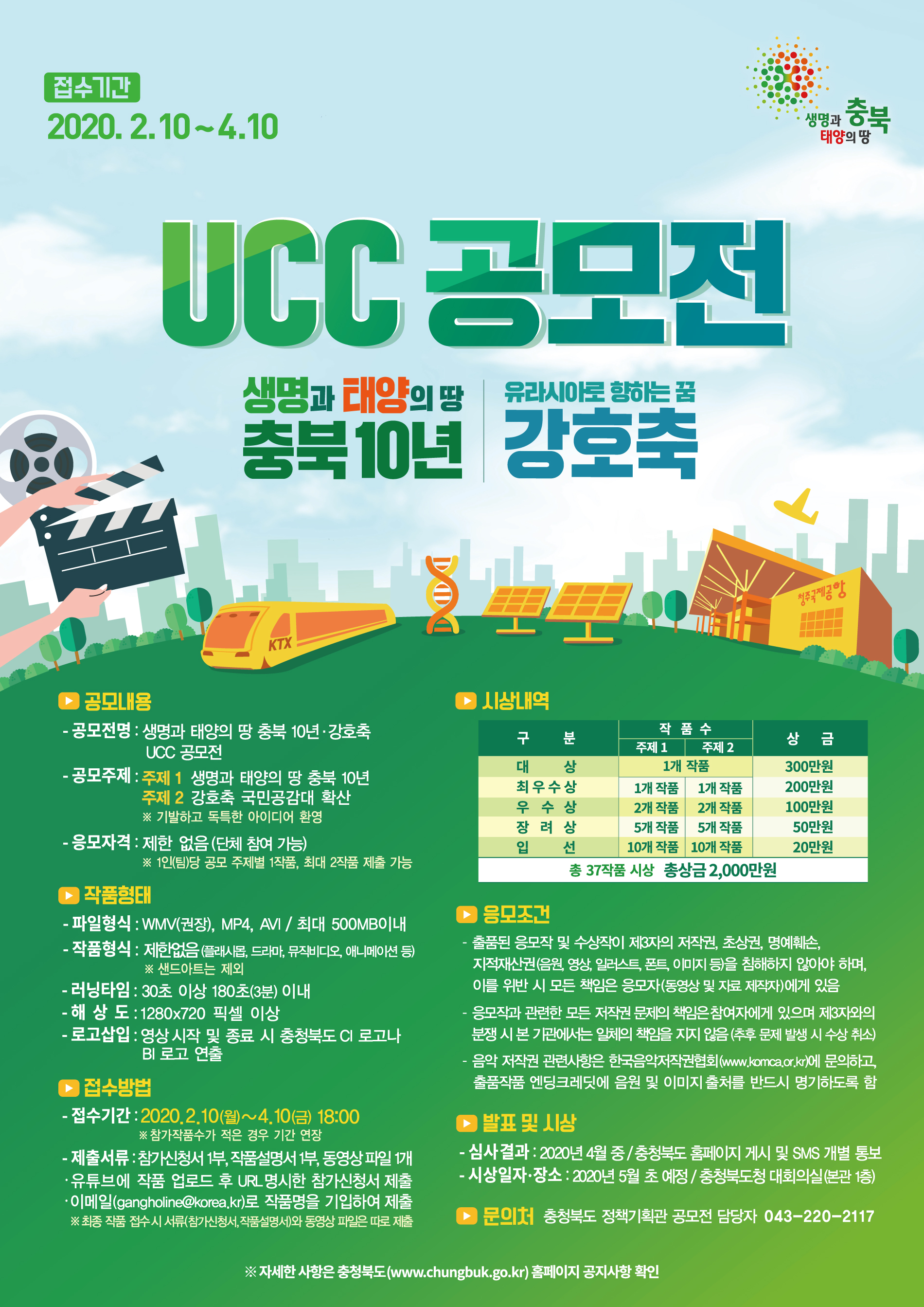 | 제목 | 충청북도 생명과 태양의 땅 충북 10년, 강호축 UCC 공모전 안내 | ||||