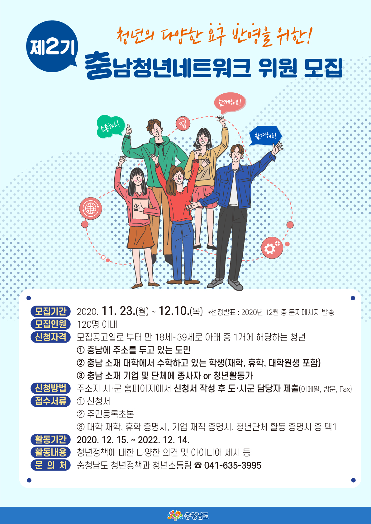 | 제목 | 제2기 충남 청년네트워크 위원 모집 안내 | ||||
