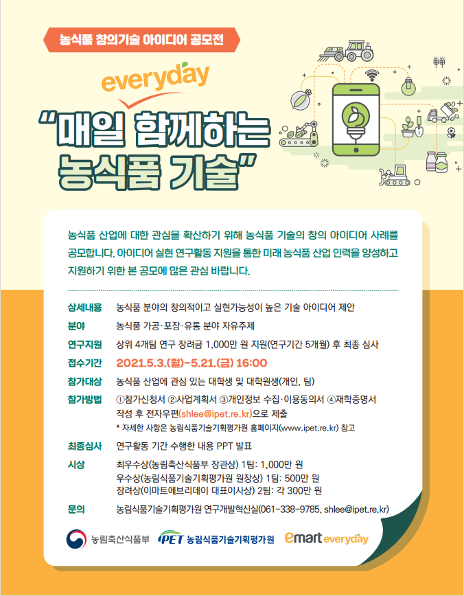| 제목 | 농식품 창의기술 아이디어 공모전 안내 | ||||