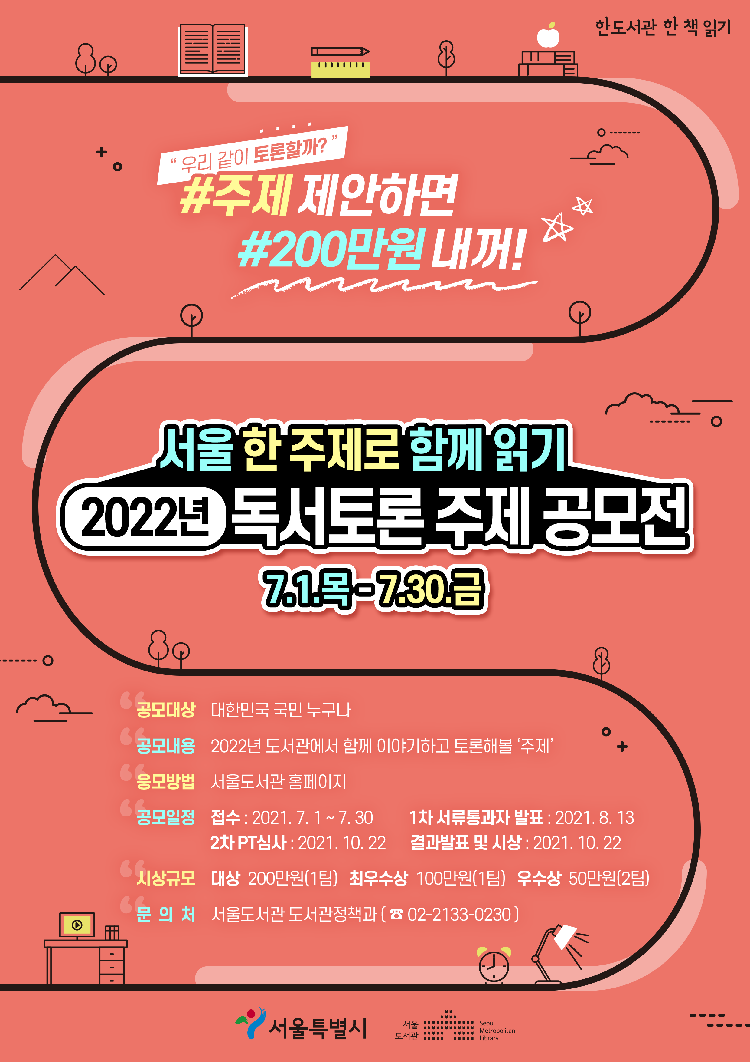 | 제목 | 서울 한 주제로 함께 읽기「2022년 독서토론 주제 공모전」 안내 | ||||