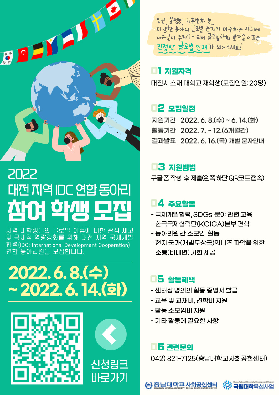| 제목 | 2022 대전 지역 IDC 연합 동아리 참여 학생 모집 | ||||