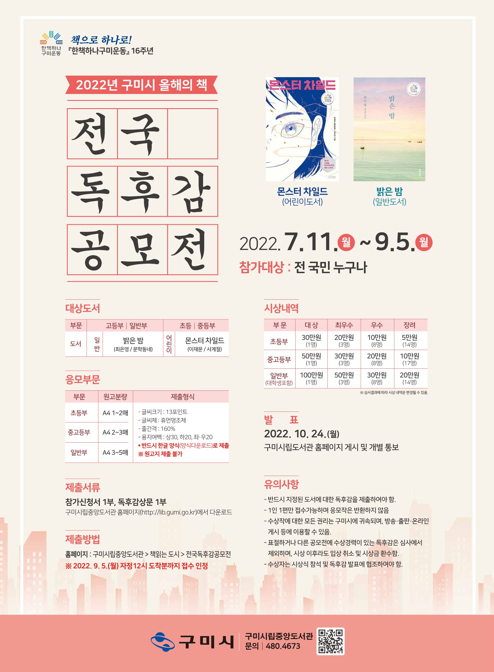 | 제목 | 2022년 구미시 올해의 책「전국독후감공모전」개최 안내 | ||||