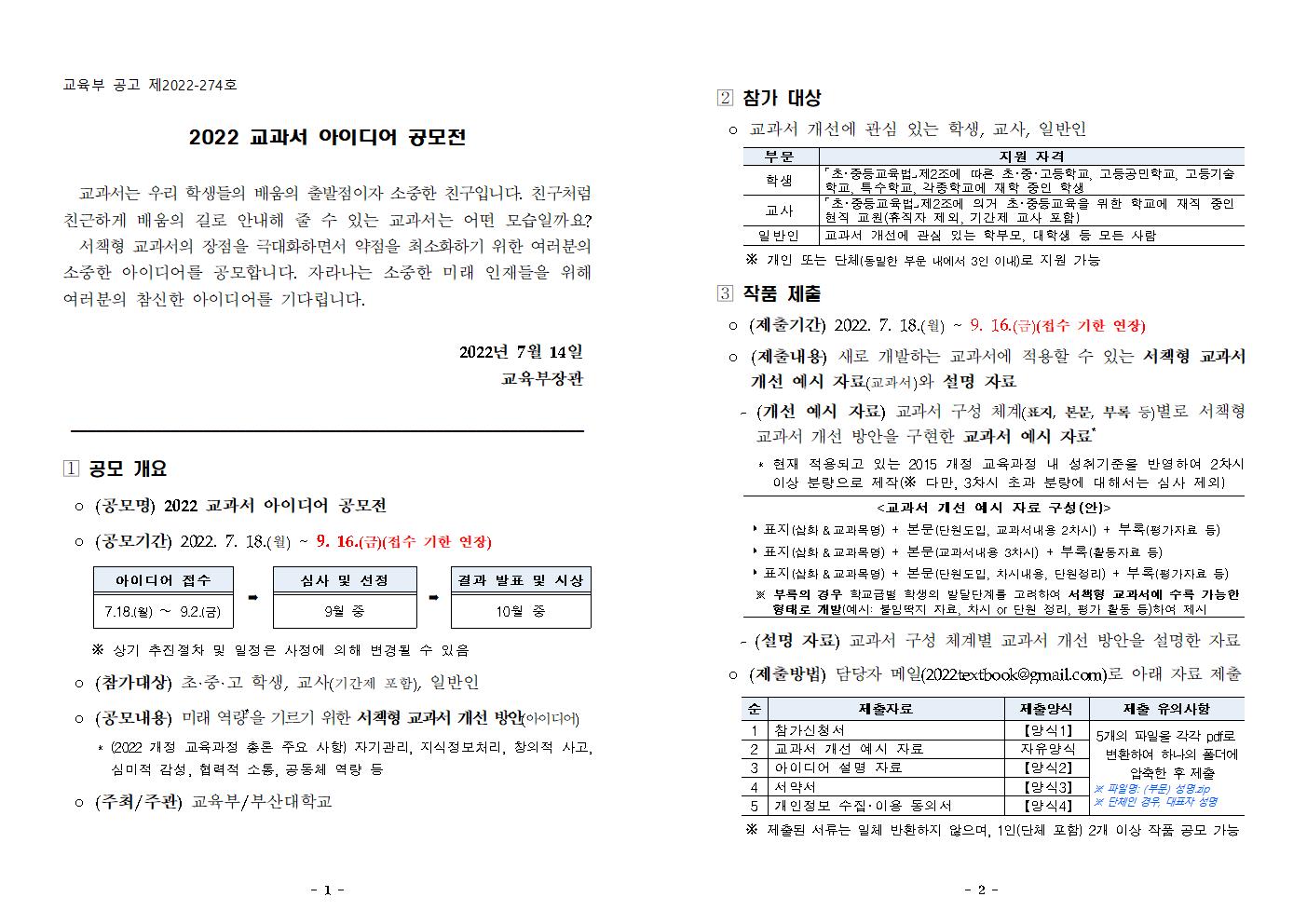 | 제목 | '2022 교과서 아이디어 공모전' 안내 | ||||