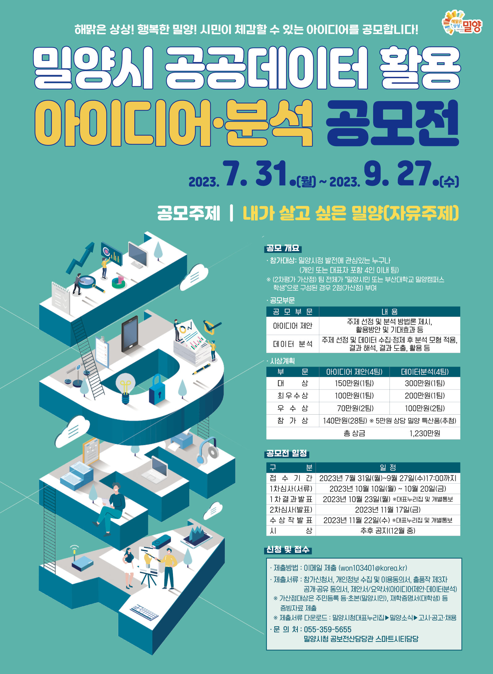 | 제목 | 2023년 밀양시 공공데이터 활용 아이디어·분석 공모전 안내 | ||||