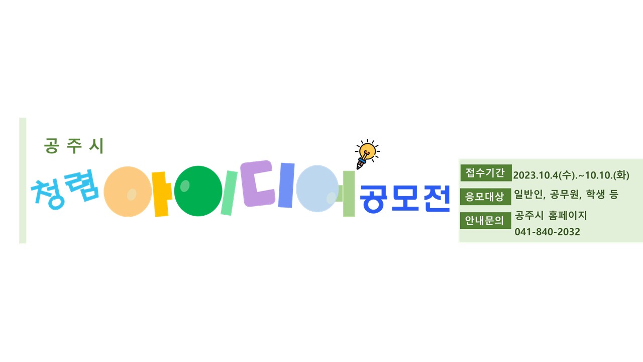 | 제목 | 2023년 공주시 청렴 아이디어 공모전 참여 안내 | ||||