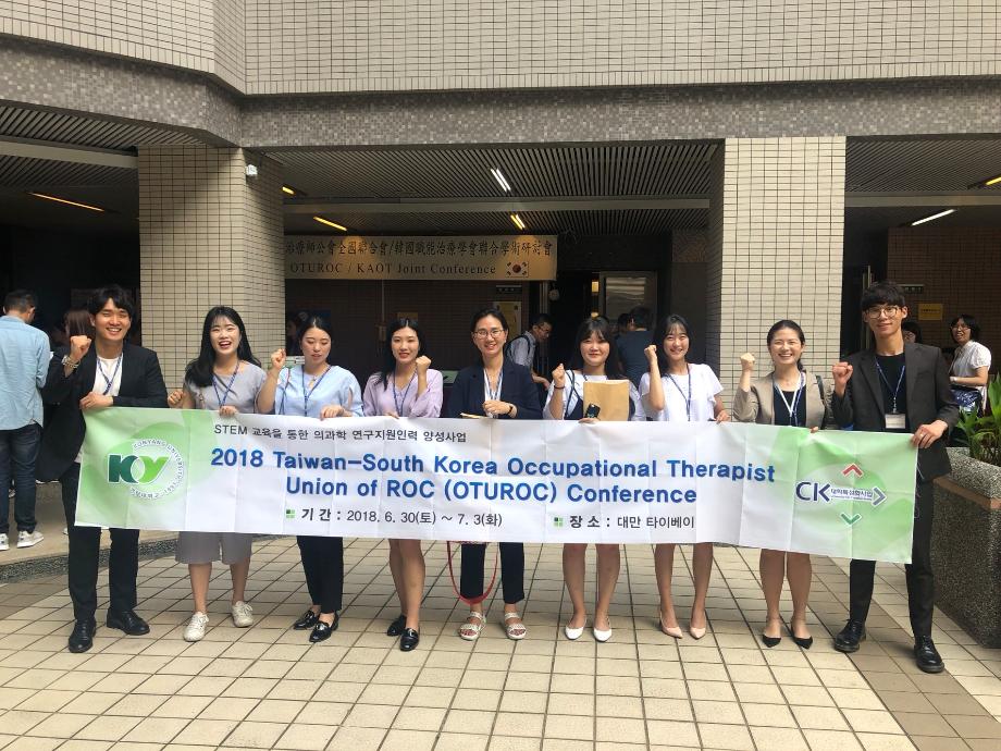 건양대학교(총장 정연주) 작업치료학과 김희, 김수경 교수 외 학생 7명(이후신, 정은영, 박예현, 이석희, 이지은, 이순혁, 정다운)이 이달초 대만 타이베이에서 열린 한국-대만 작업치료사협회 공동학술대회에 참석해 2건의 심포지움 및 2건의 포스터를 발표했다. 김 희 교수와 김수경 교수는 각각 한국의 방문재활과 치매 작업치료 연구에 대해서 심포지움 발표를 진행했고, 이후신 학생은 환경수정에 대한 연구를, 정은영 외 5명 학생은 베이비붐 세대의 삶의 질과 작업수행에 대한 연구를 포스터로 발표했다. 한국-대만 작업치료 간의 첫 번째 교류의 시작을 알리는 이번 학술대회에서 건양대학교 작업치료학과팀은 한국 학생으로는 유일하게 참가해 직접 연구결과를 발표하는 성과를 냈다. 이번 학술대회 참가 및 발표는 작업치료학과 학생들이 교육부 CK-1(지방대학 특성화사업)의 지원을 통해 시행한 연구 결과로 진행됐으며 그와 함께 대만의 발달된 정신보건 작업치료 현장 기관을 탐방함으로써 학생들이 한국 정신보건 작업치료학계의 발전을 위한 기반을 다질 수 있는 기회가 됐다. |