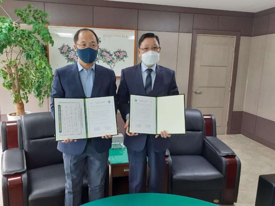 업무협약을 체결한 육군종합보급창 마태준 창장(왼쪽)과 건양대 군사학과 이세영 교수.jpg