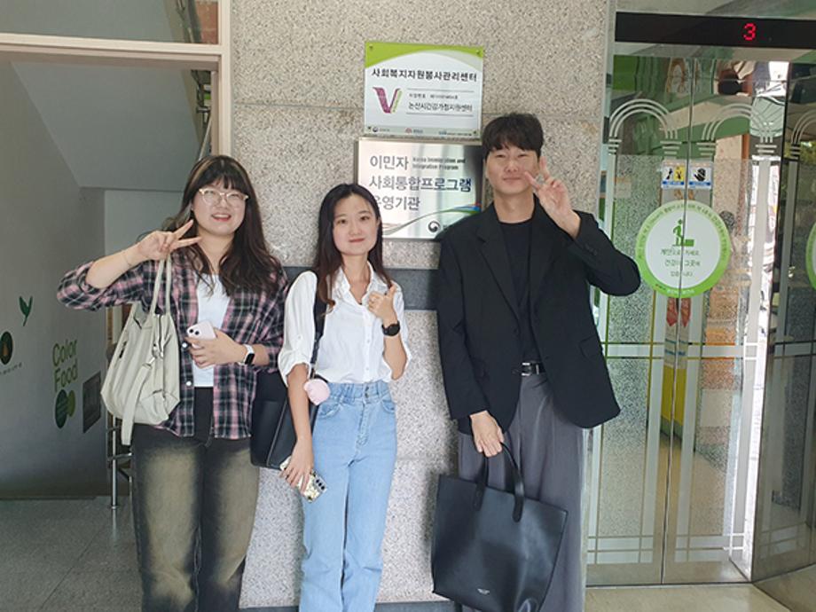 지난 12일 논산시 가족센터를 방문해 다문화 관련 인터뷰를 진행하는 건양대 심리상담치료학과 학생들.jpg