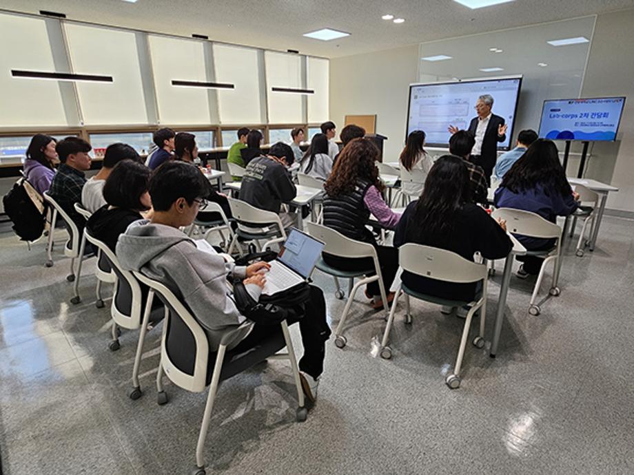 이번에 열린 Lab-corps 간담회에는 교내 공모를 통해 선정된 39개 연구팀(27개 학과)의 학생팀장 및 팀원, 사업단 관계자 등 40여 명이 참여했다.