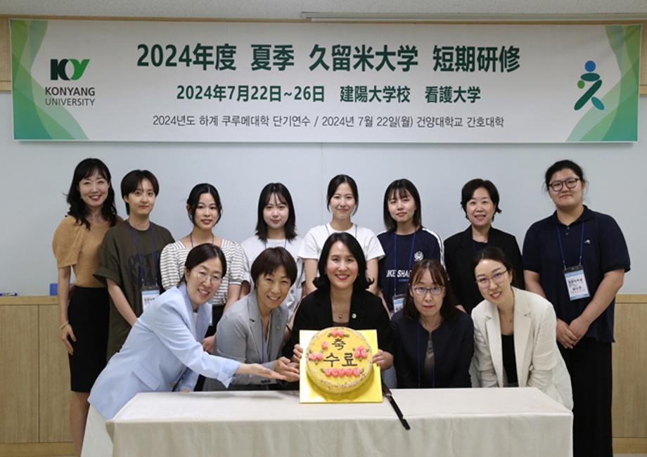 건양대 간호대학을 방문해 단기연수를 진행한 일본 쿠루메대학 교수와 학생, 건양대 교수들의 기념사진.jpg