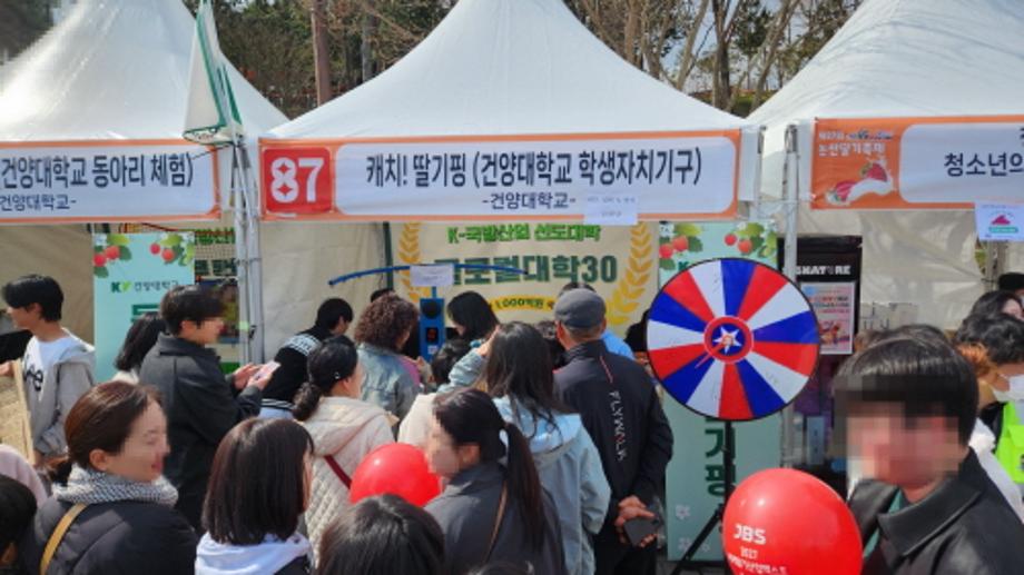 논산딸기축제는 논산 지역의 대표적인 축제로 건양대는 퍼레이드, 공연, 부스운영 등 다채로움 프로그램에 참여해 지역 주민과 관광객에게 즐거움을 선사했고, 올해는 특히 학생들의 아이디어가 돋보이는 체험형 부스를 운영하여 큰 호응을 얻었다.