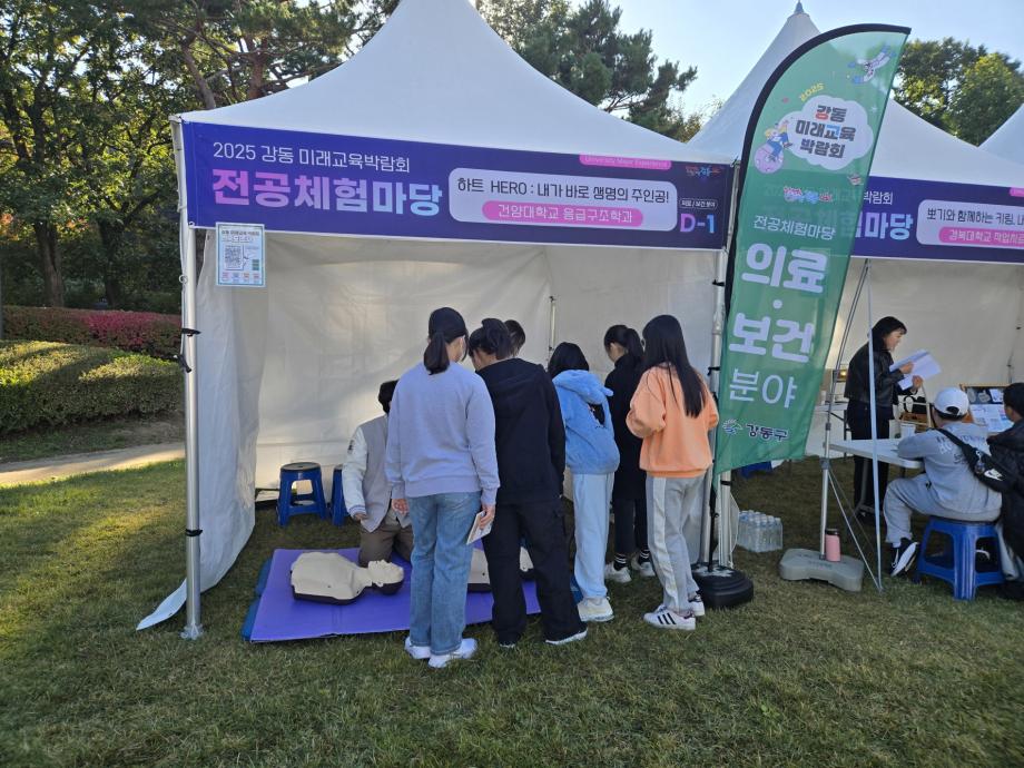 건양대학교(총장 김용하) 응급구조학과(학과장 김용석)는 지난 10월 28일과 29일, 강동아트센터에서 열린 ‘2025 강동 미래교육박람회’에 참가하여 ‘내가 바로 생명의 주인공!’이라는 주제로 체험 부스를 성공적으로 운영했다.