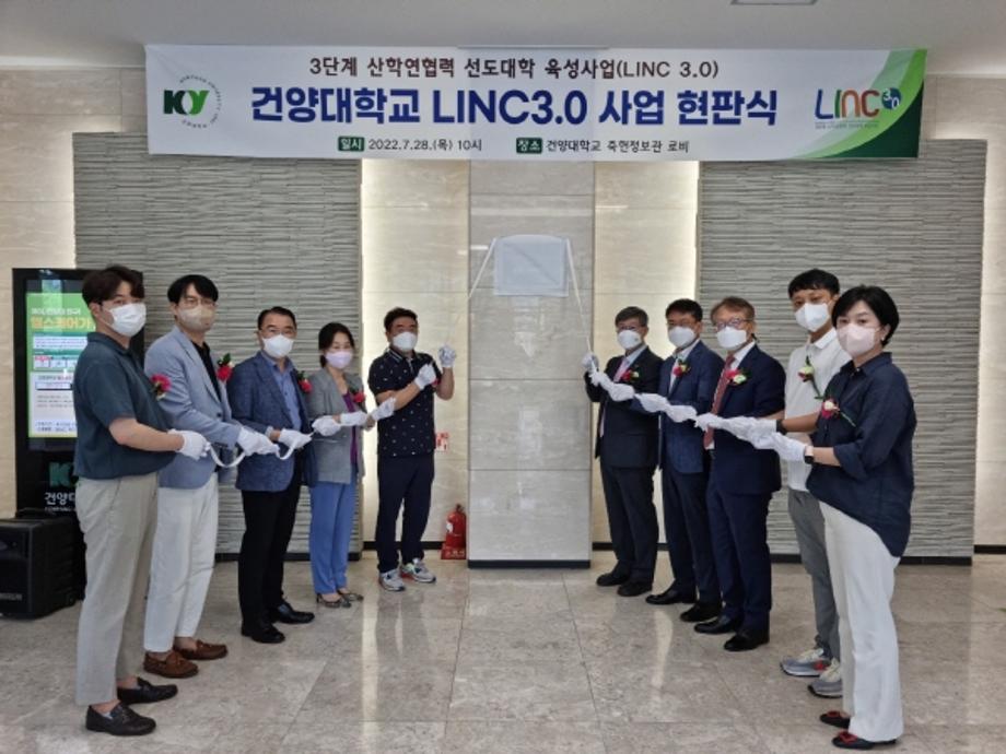 건양대학교(총장 이철성)는 27일 오전 메디컬캠퍼스 죽헌정보관에서 ‘3단계 산학연협력 선도대학 육성사업(LINC3.0) 현판식’을 개최했다고 밝혔다.