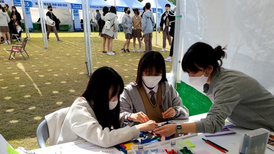 의료공간디자인학과는 ‘레고블록을 이용한 병원공간 만들기’를 주제로 해 부스를 방문한 청소년들에게 환자입장과 의료진입장에서의 좋은 병원은 무엇인가에 대한 의견을 나누며 청소년들이 병원 공간에 대한 브레인스토밍 및 마인드맵 작성을 통해 직접 병원 설계를 해보는 시간을 가졌다.