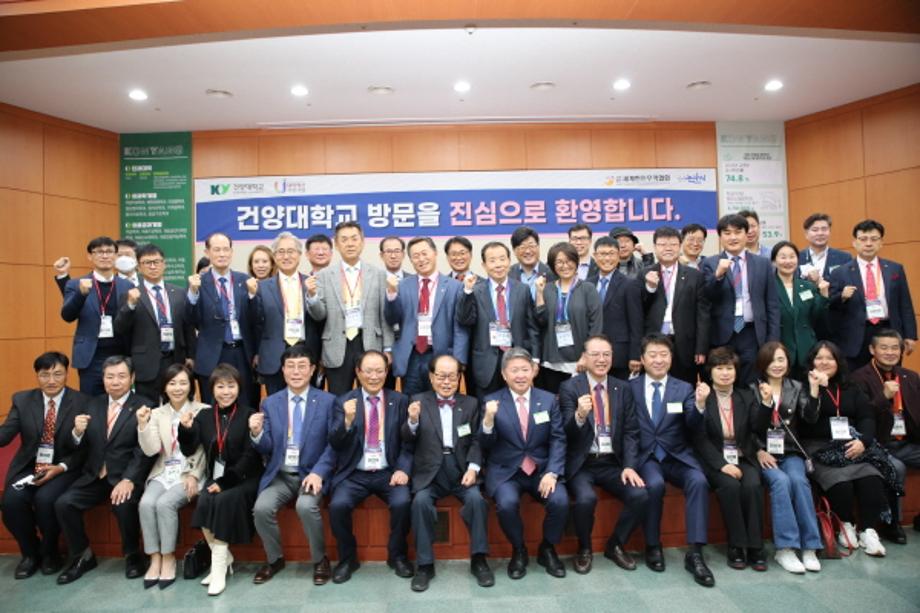 31일 건양대를 방문한 월드옥타 회원들과 건양대 김용하 총장 및 주요 보직자들의 기념사진.jpg