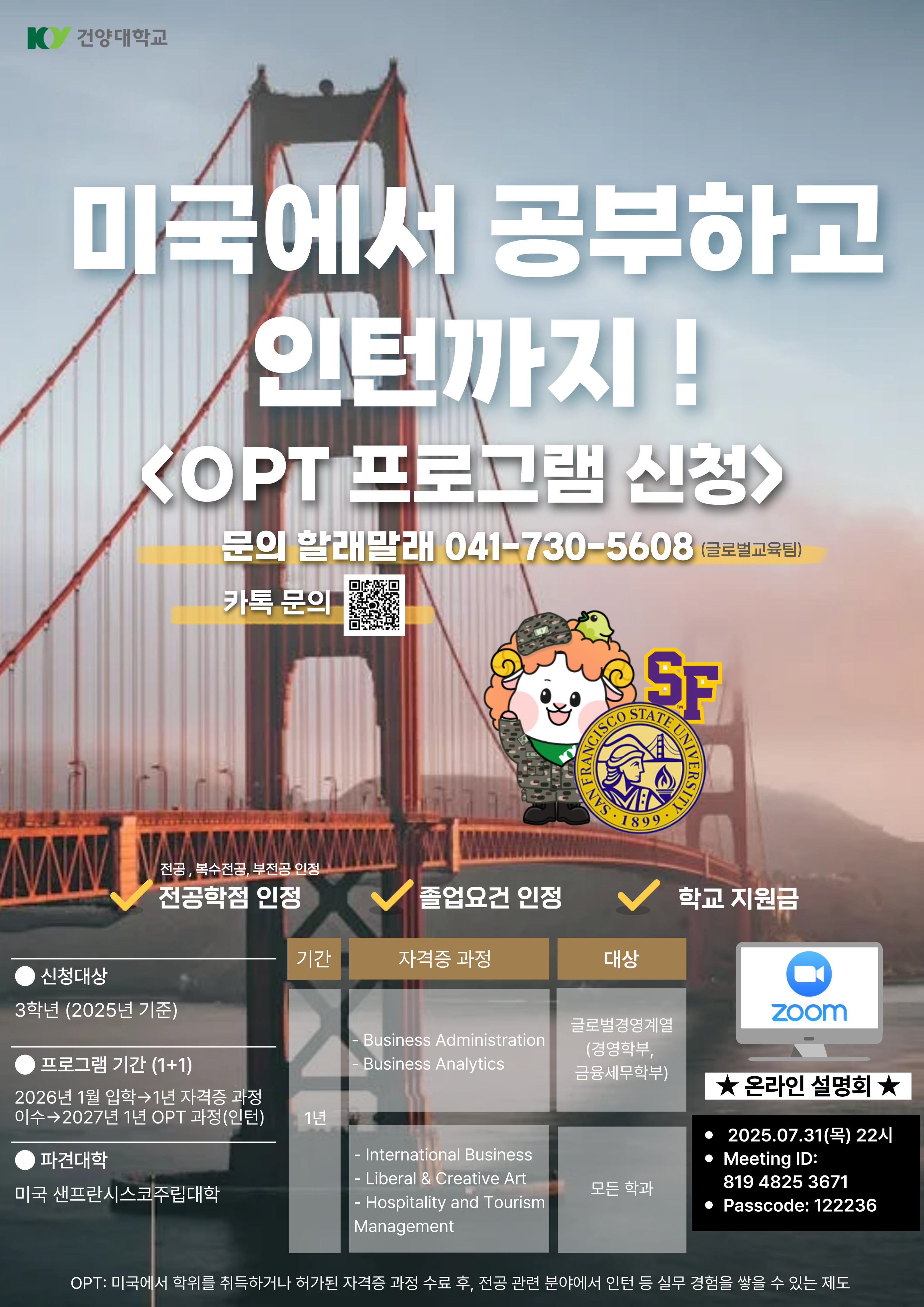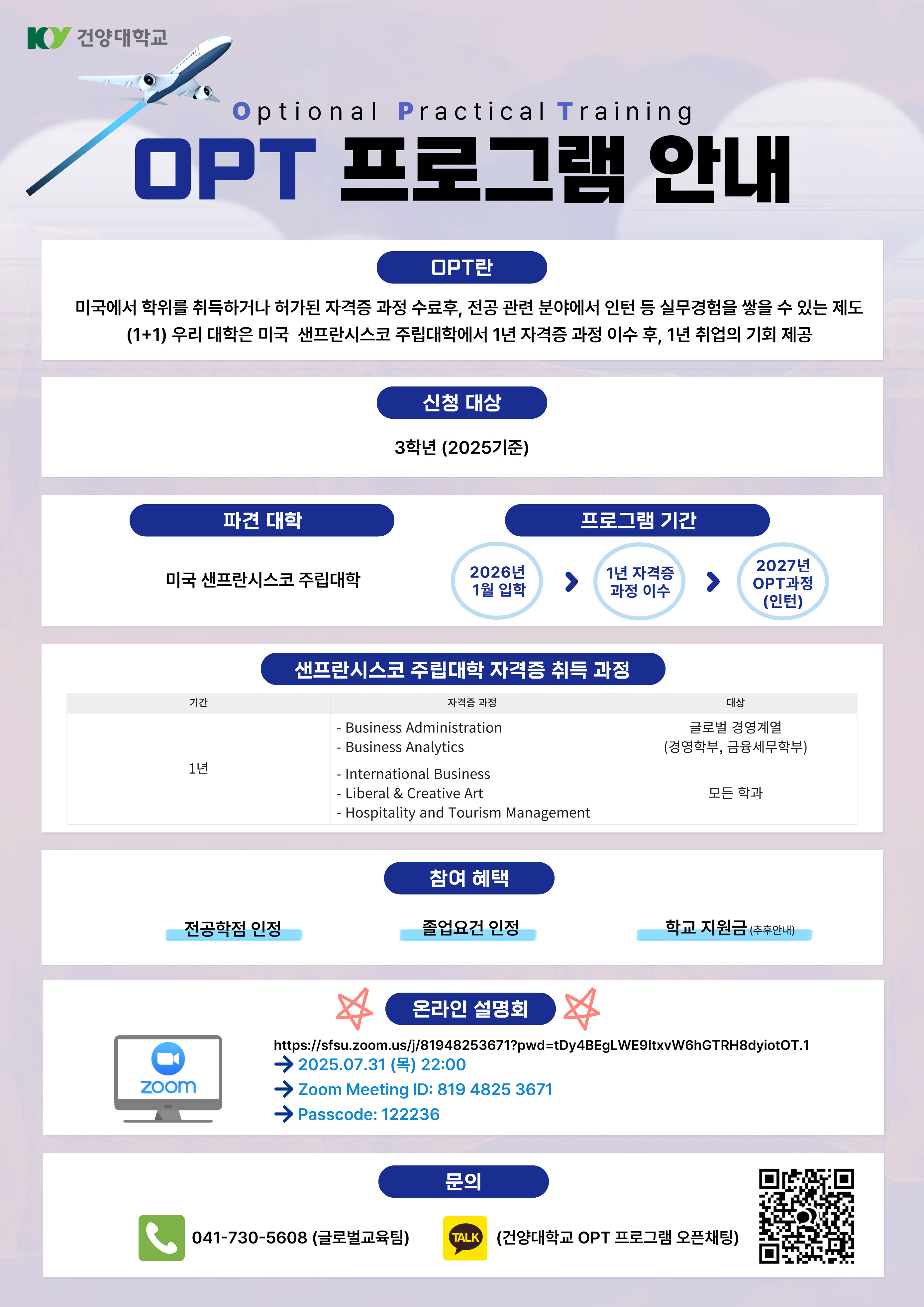 『 [글로컬대학사업] 2025학년도 OPT 프로그램 온라인 설명회 』글의 상세내용을 확인하는 표로 제목, 부서명, 등록일, 조회, 첨부, 내용으로 나뉘어 설명합니다.
