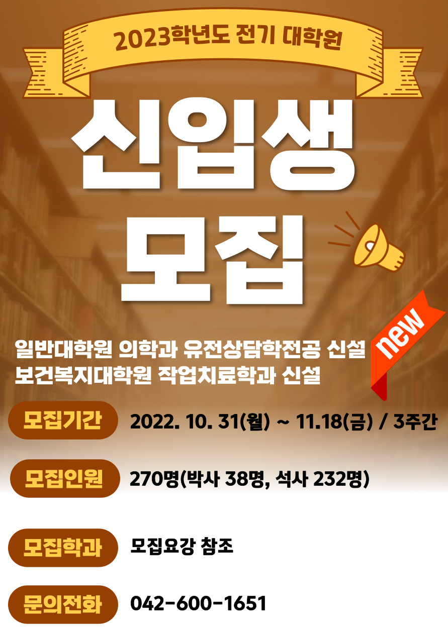 | 제목 | 2023학년도 전기 대학원 신입생 모집 안내 | ||||